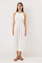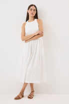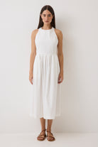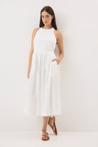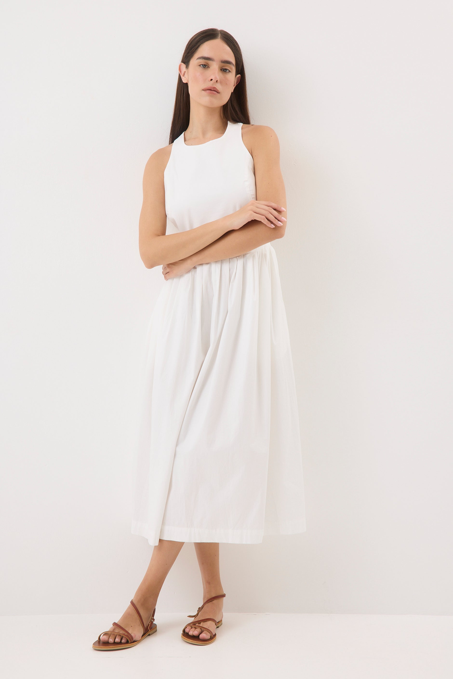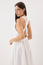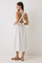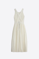 - גזרה משוחררת באורך מידי עם מפתח צאוור עגול גב חשוף וכתפיות רחבות מצטלבות בחלקה האחורי