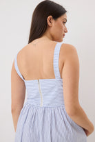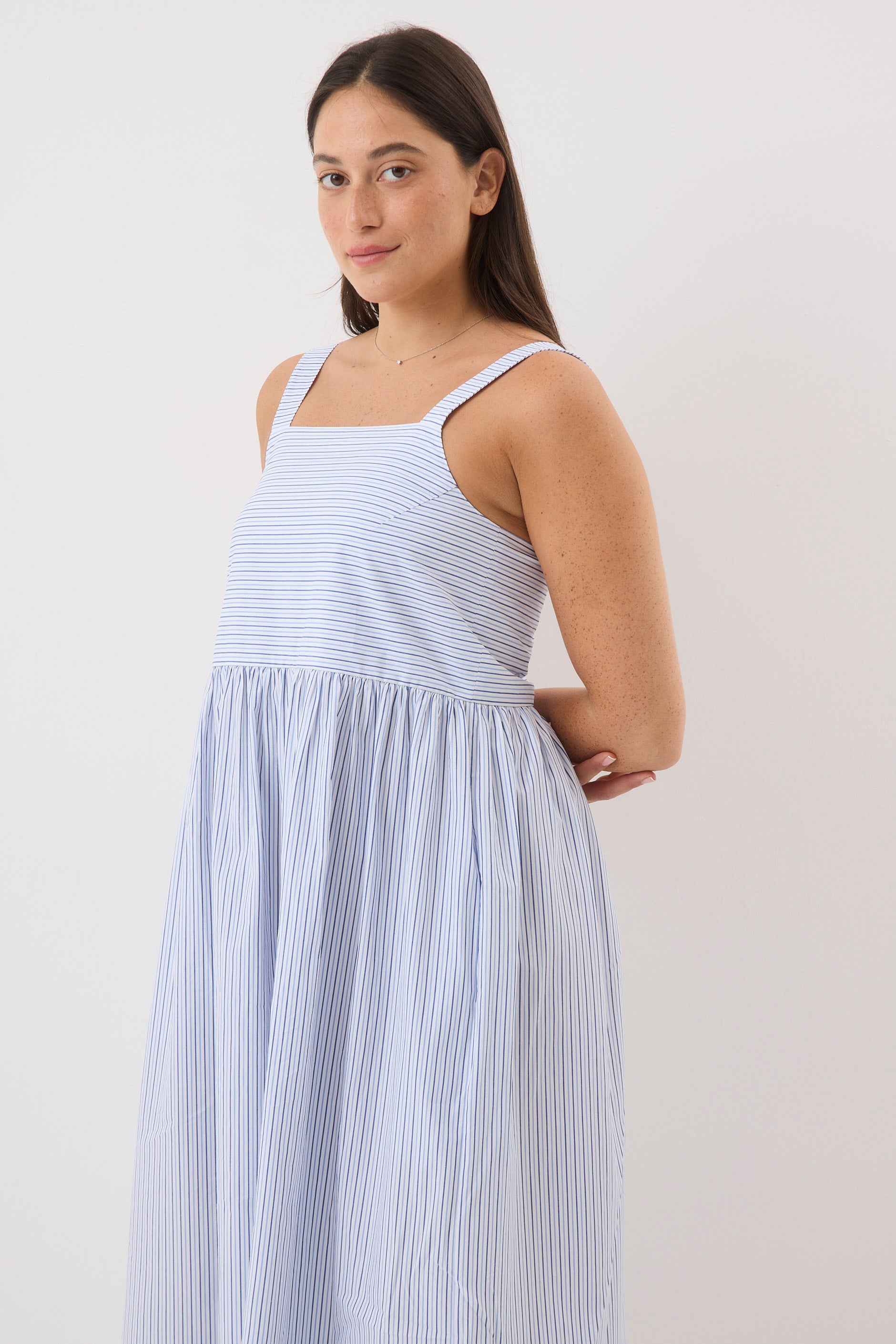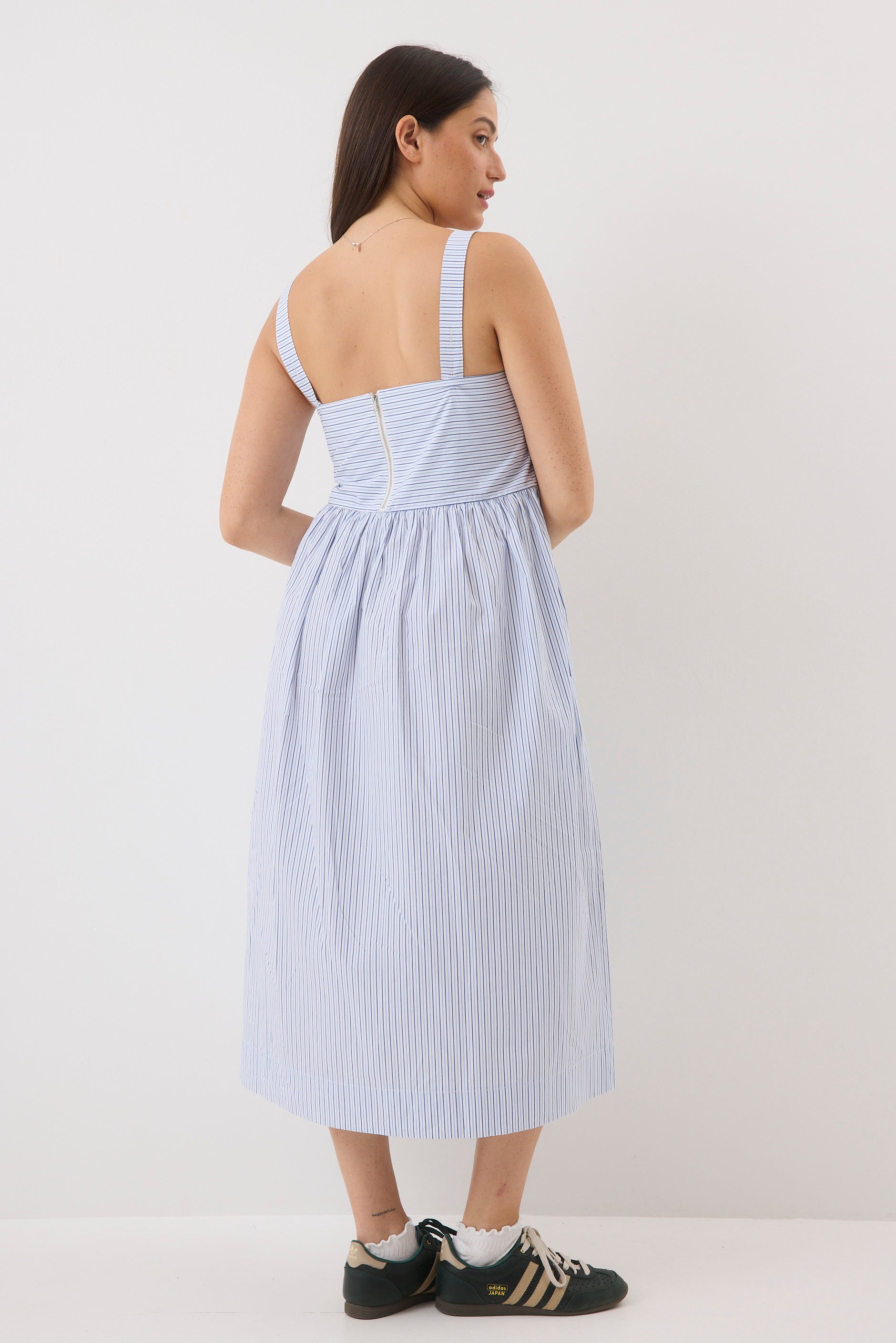 משוחררת, ללא שרוולים, עם רוכסן בגב השמלה, מתכוונת ברצועות