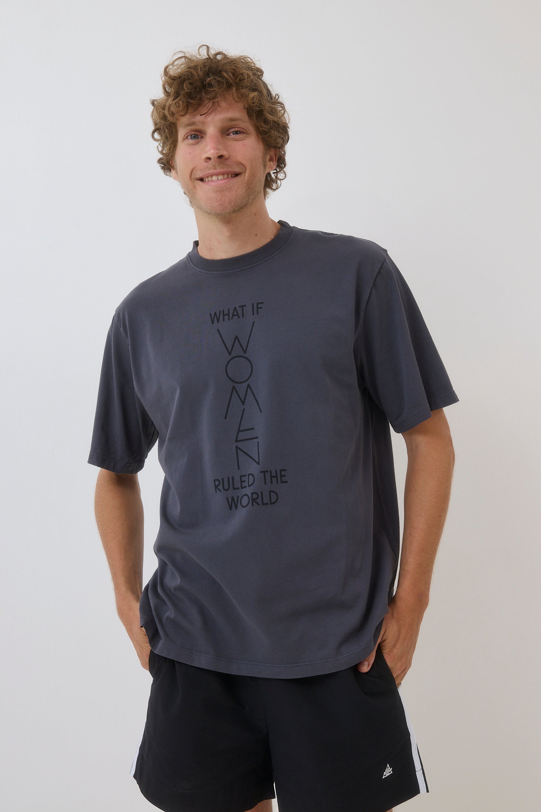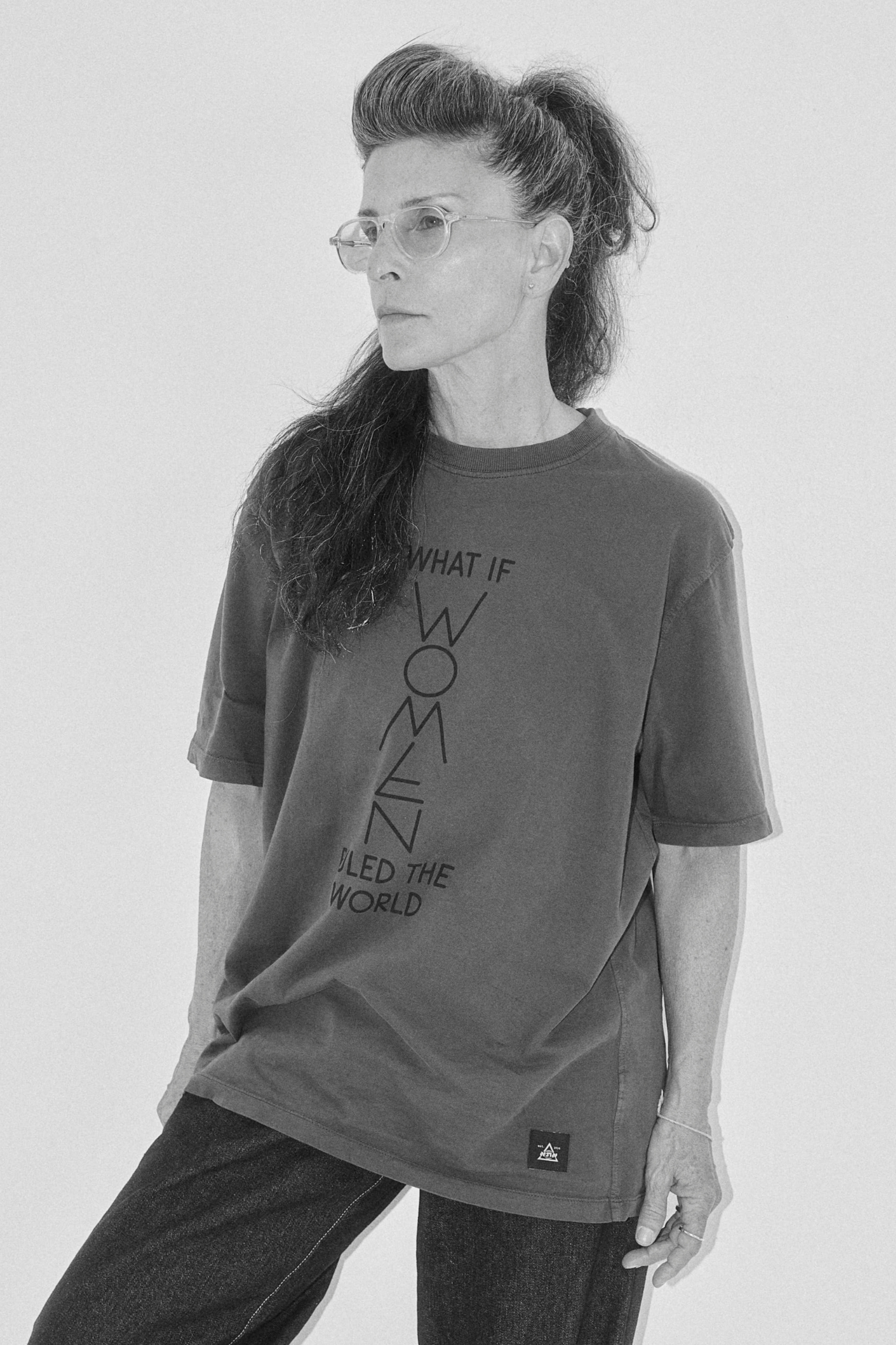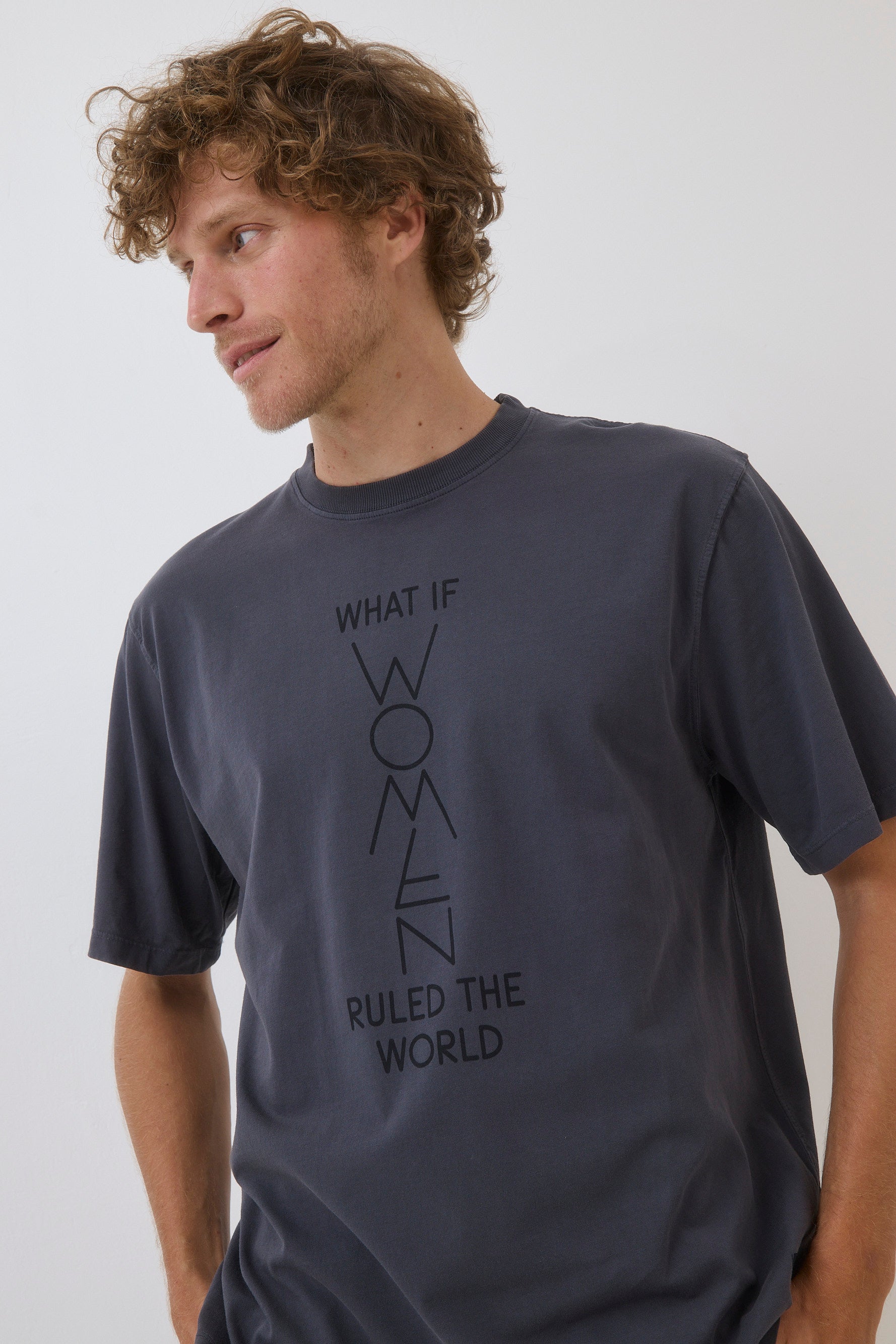 - טי לוגו עם הדפס WHAT IF WOMEN RULED THE WORLD