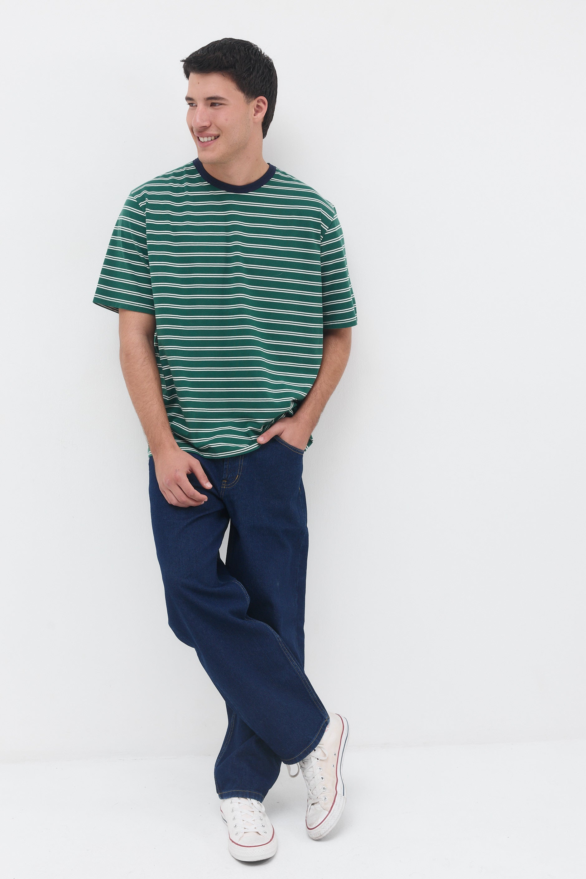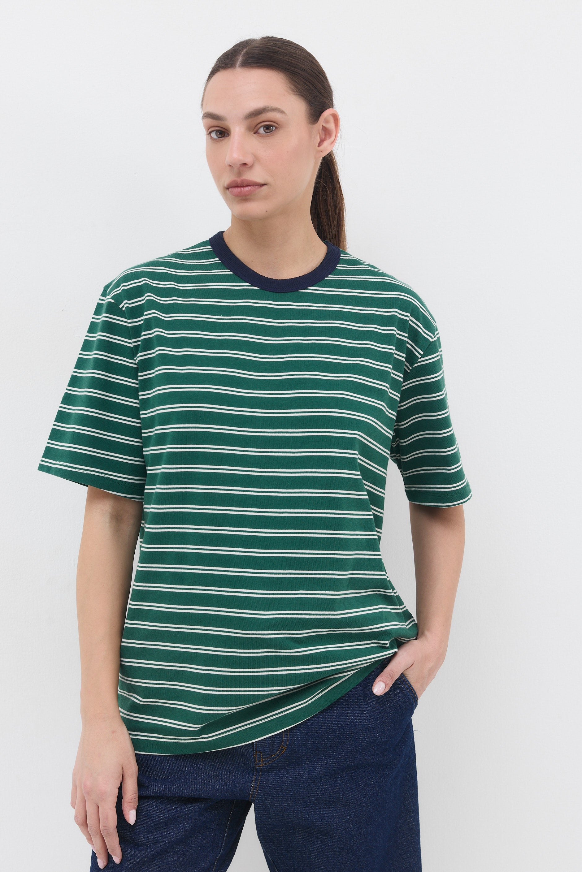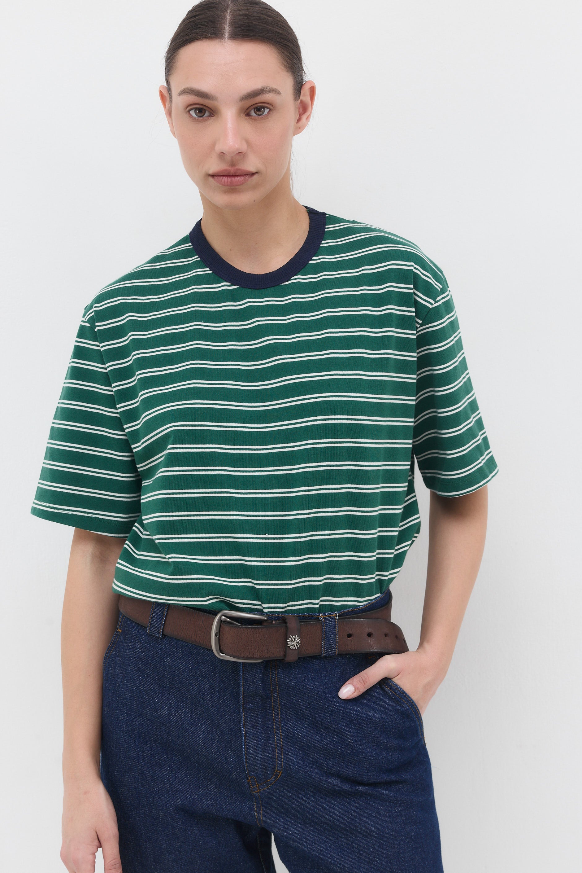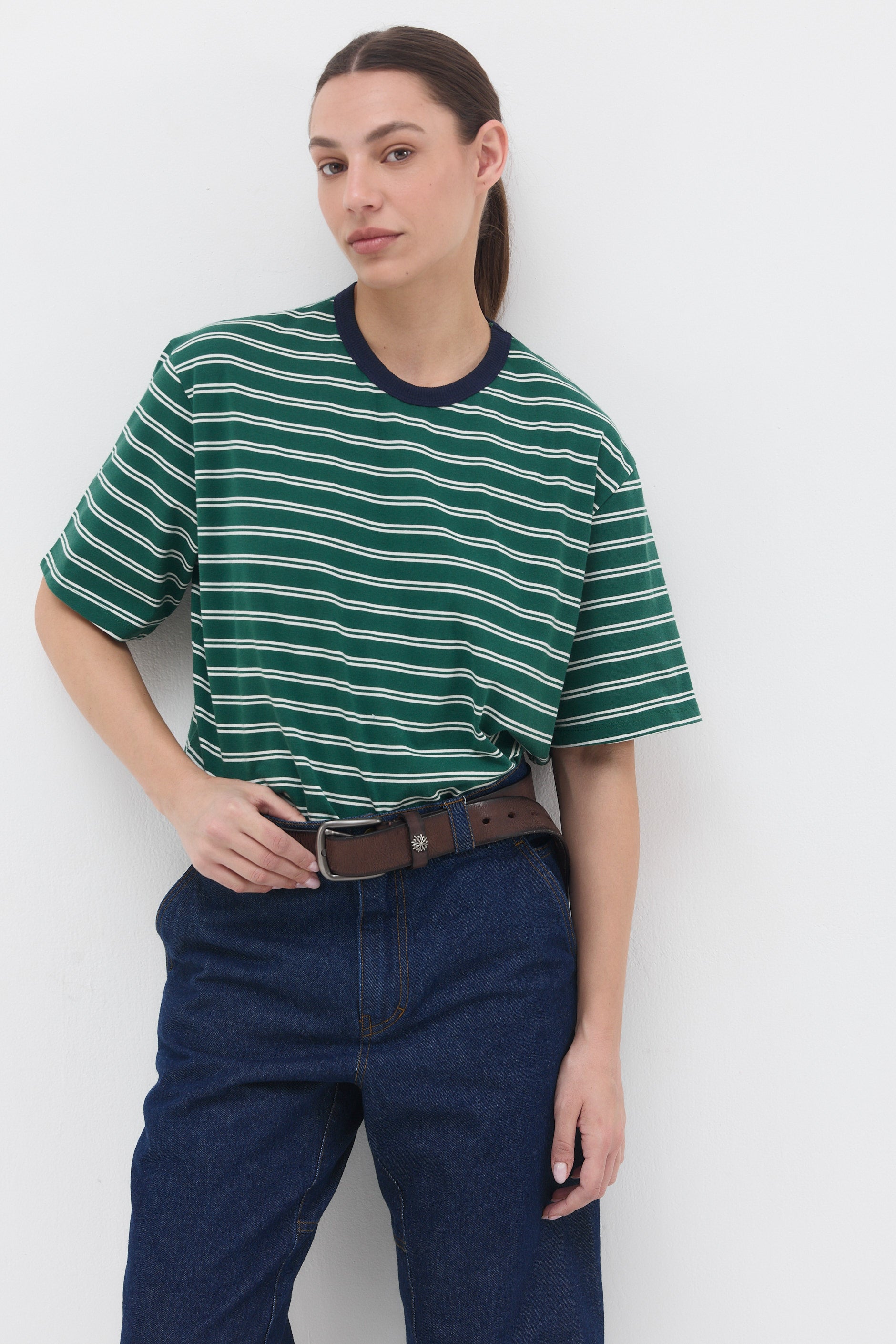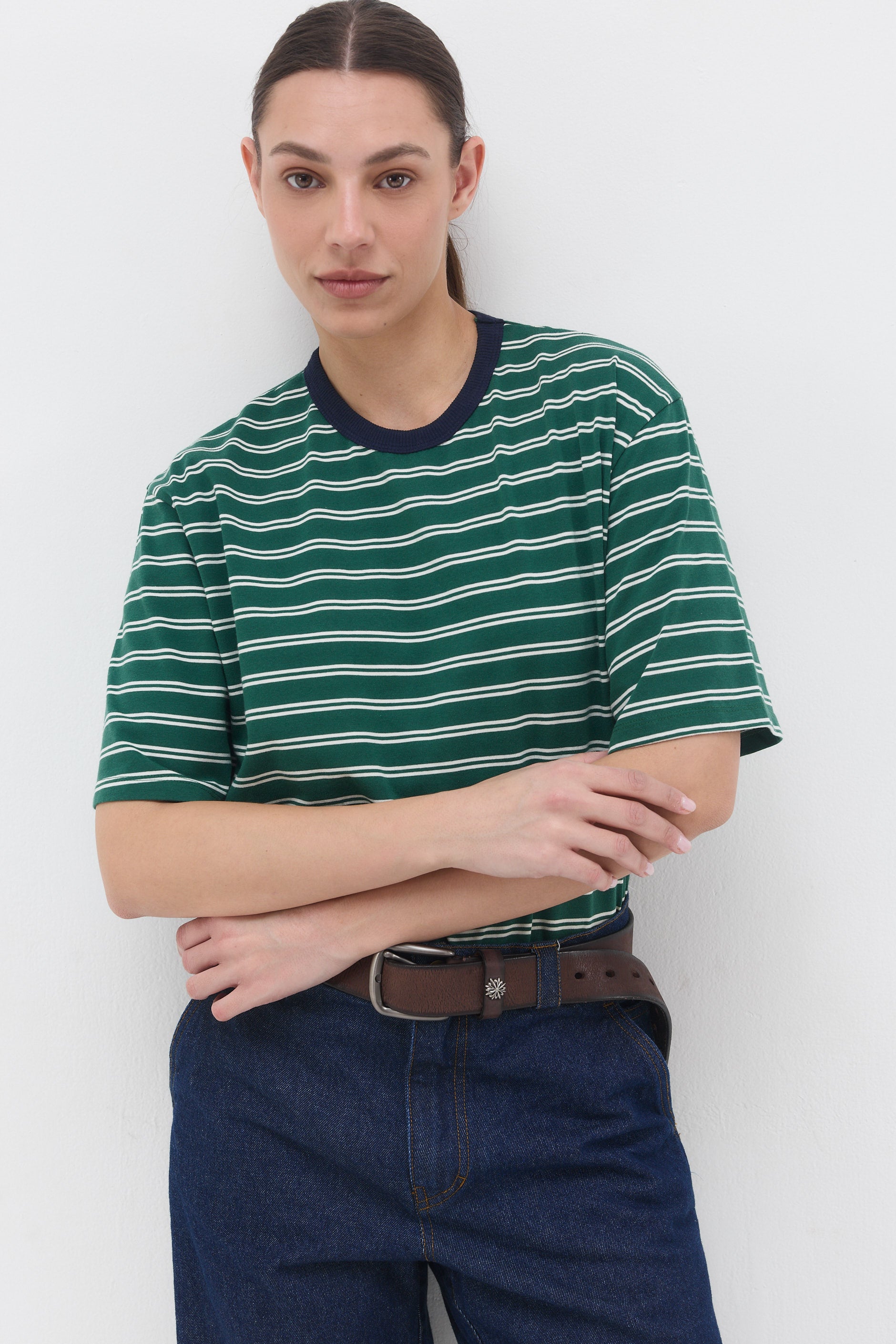 חולצה טי בגזרה ישרה עם צווארון עגול עשוי מבד ריב