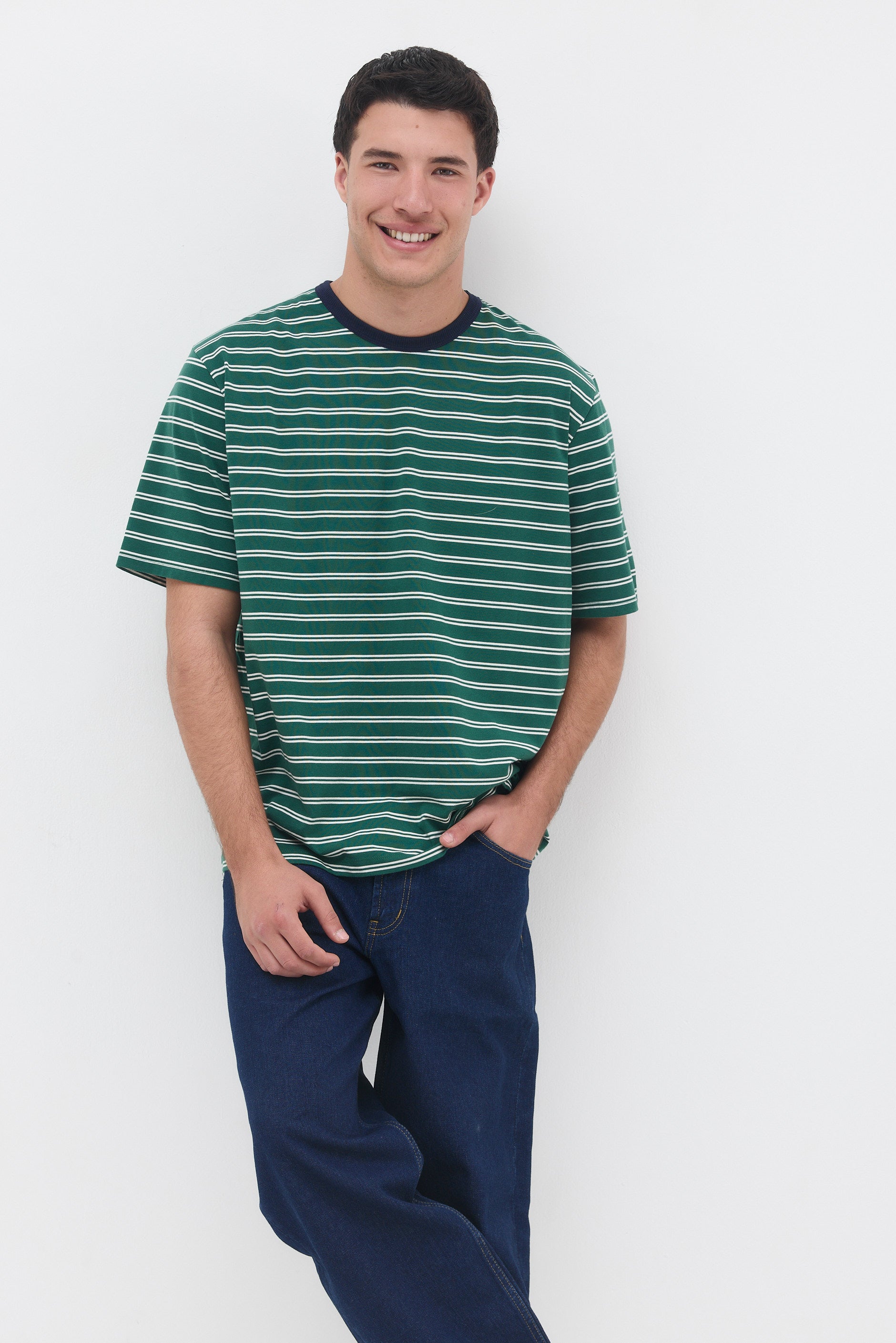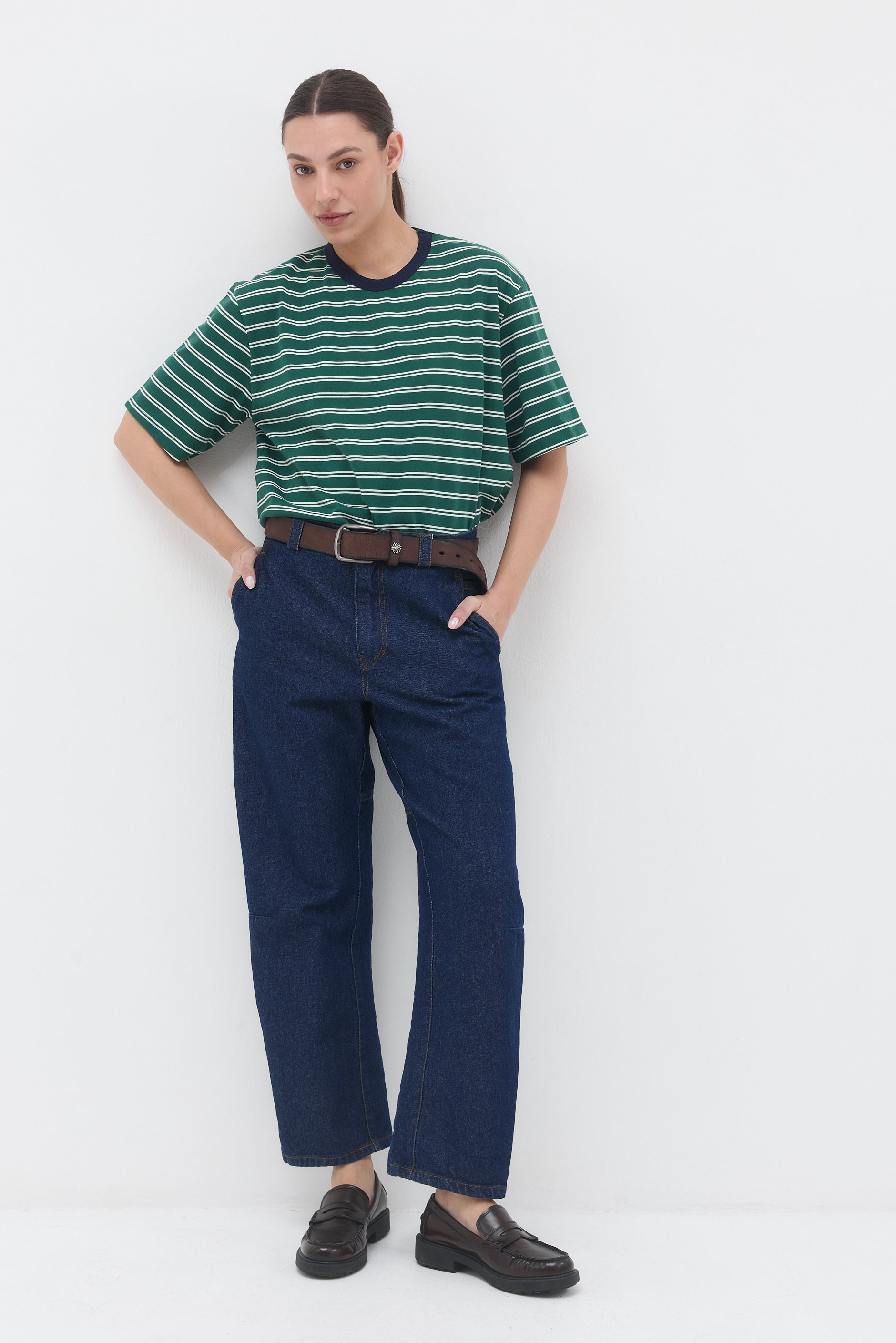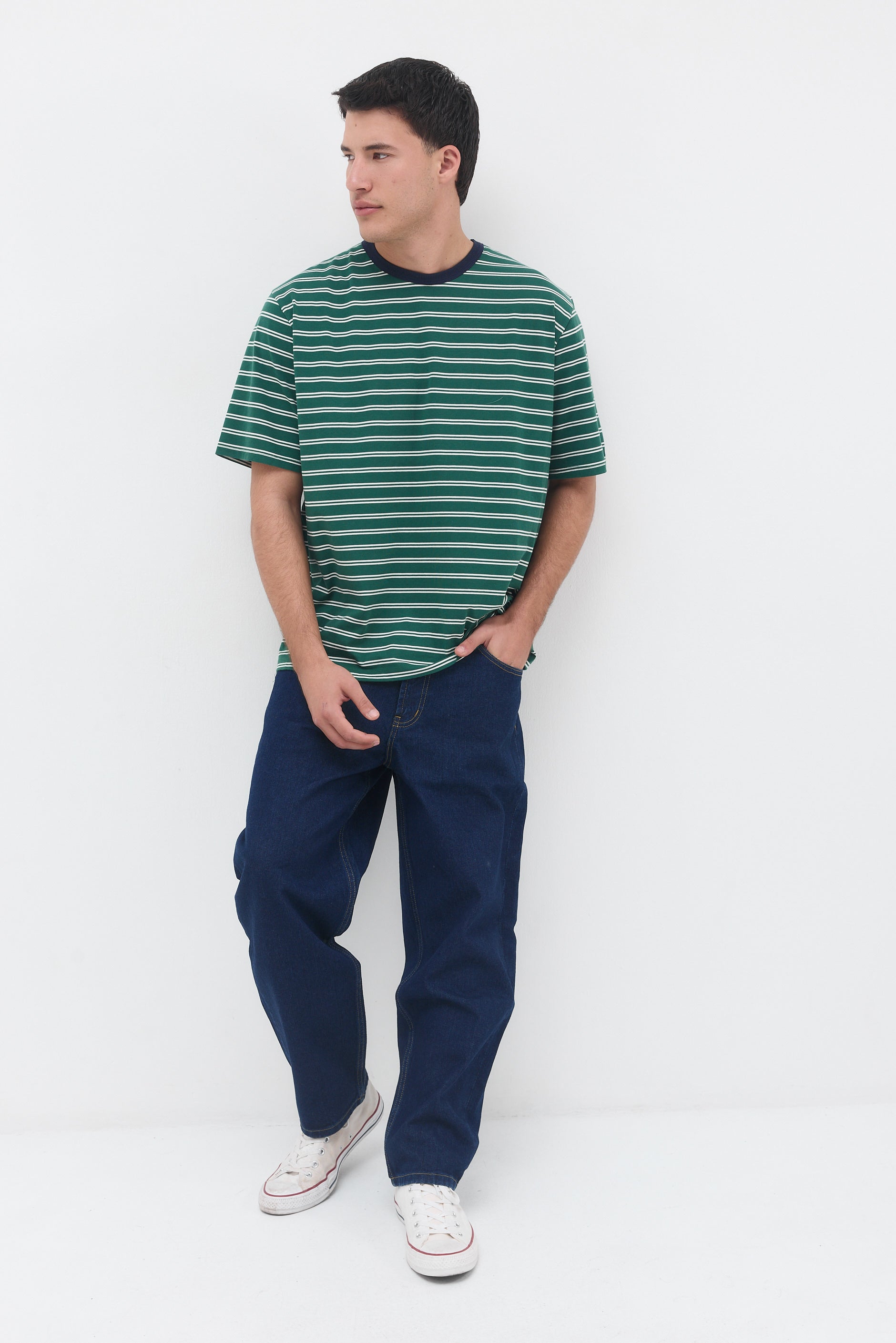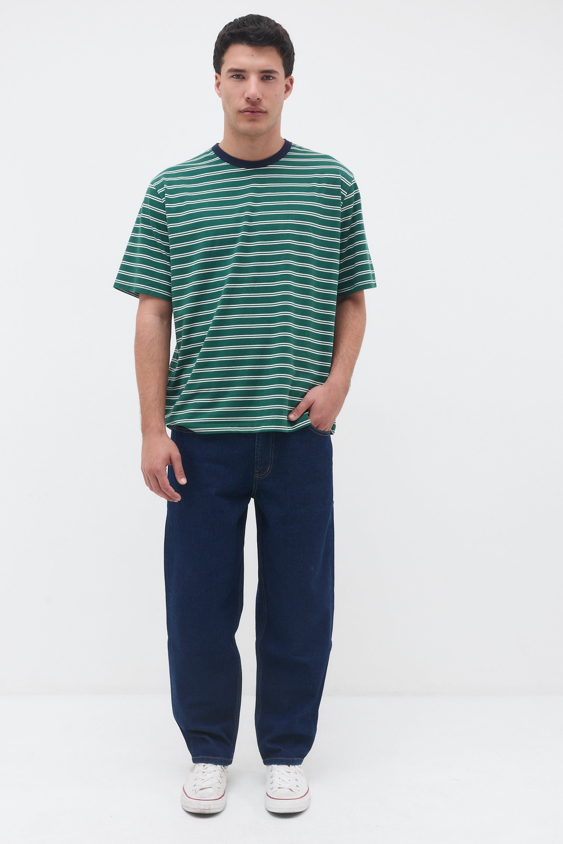 חולצה טי בגזרה ישרה עם צווארון עגול עשוי מבד ריב