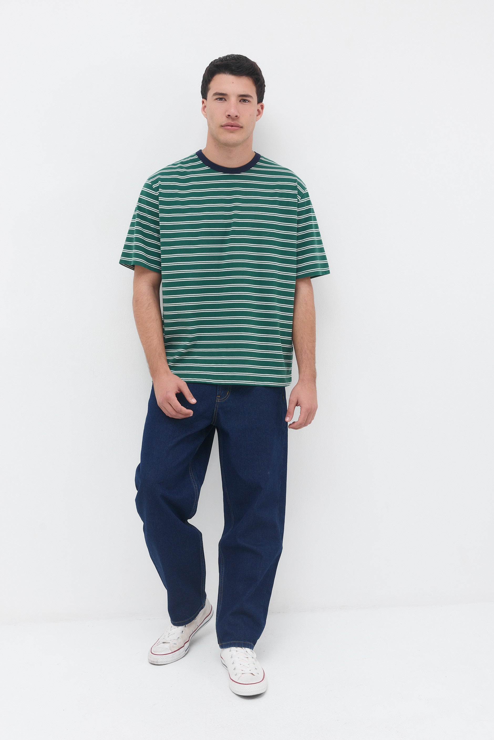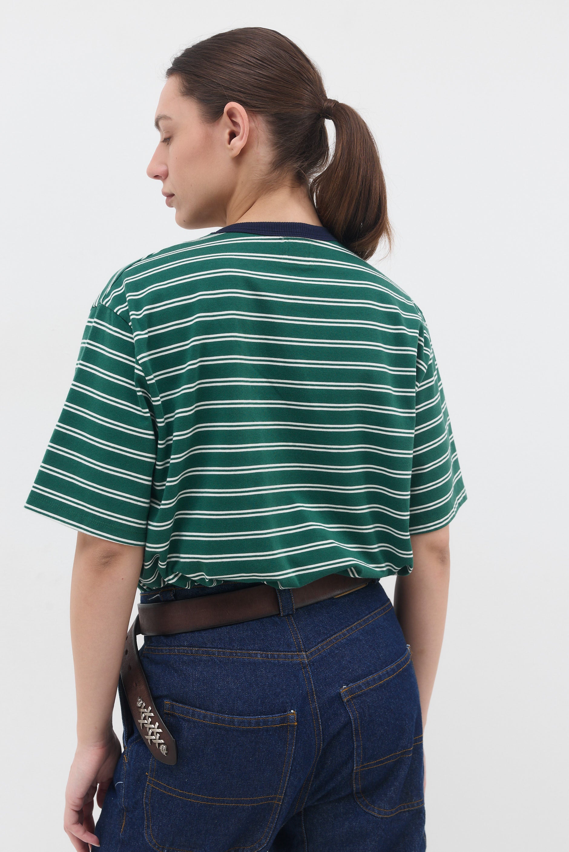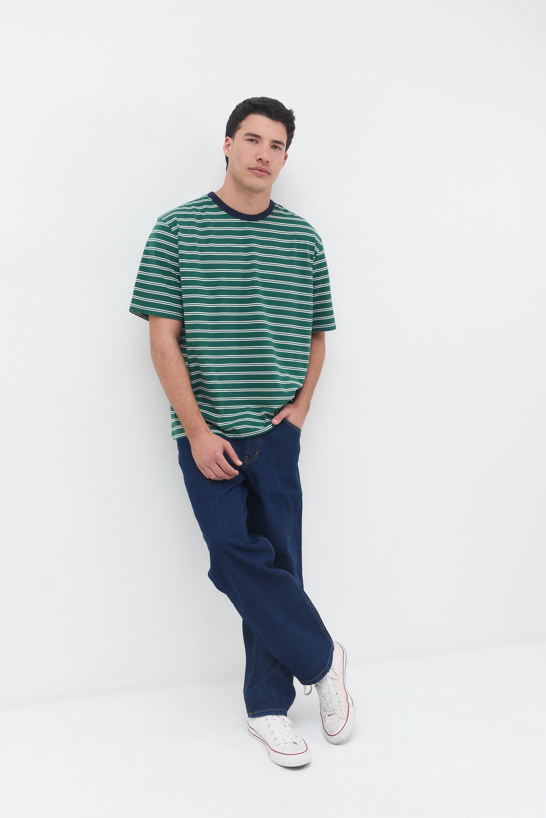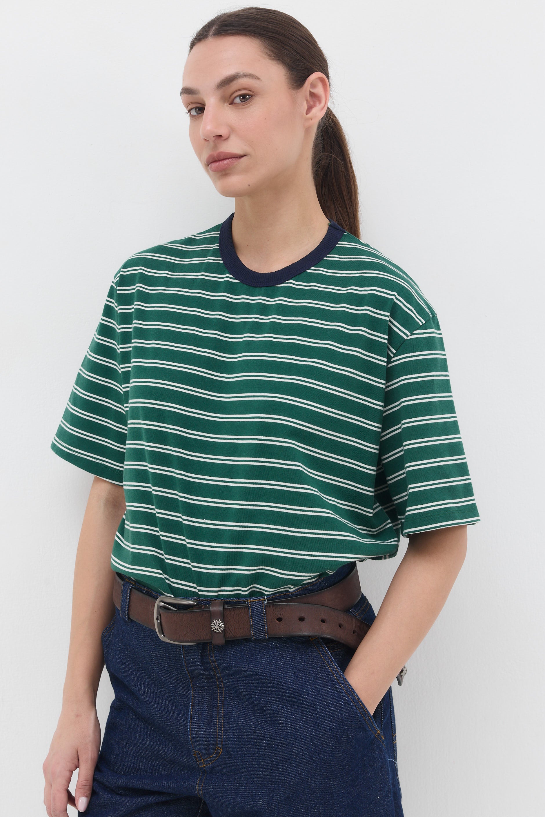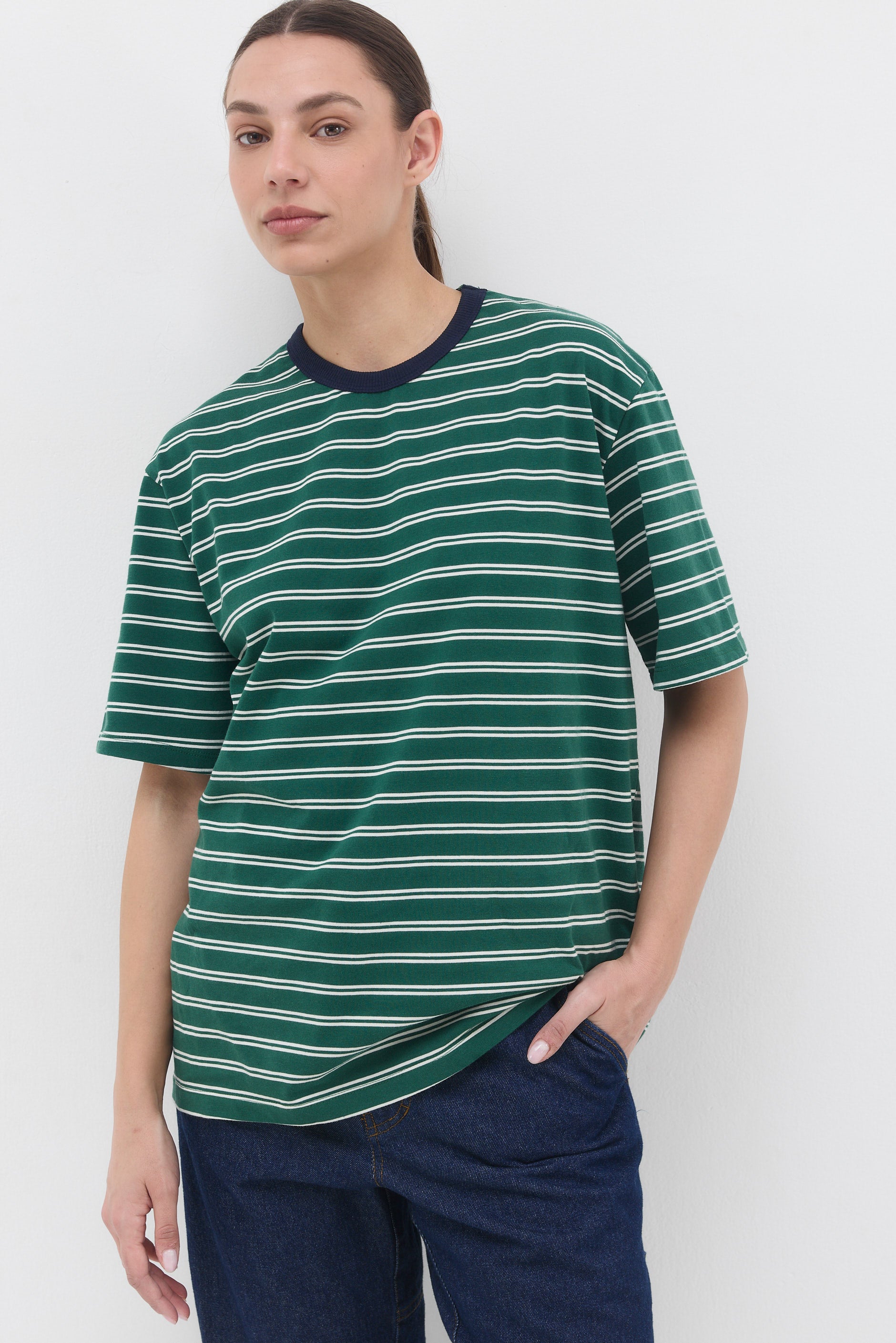 חולצה טי בגזרה ישרה עם צווארון עגול עשוי מבד ריב
