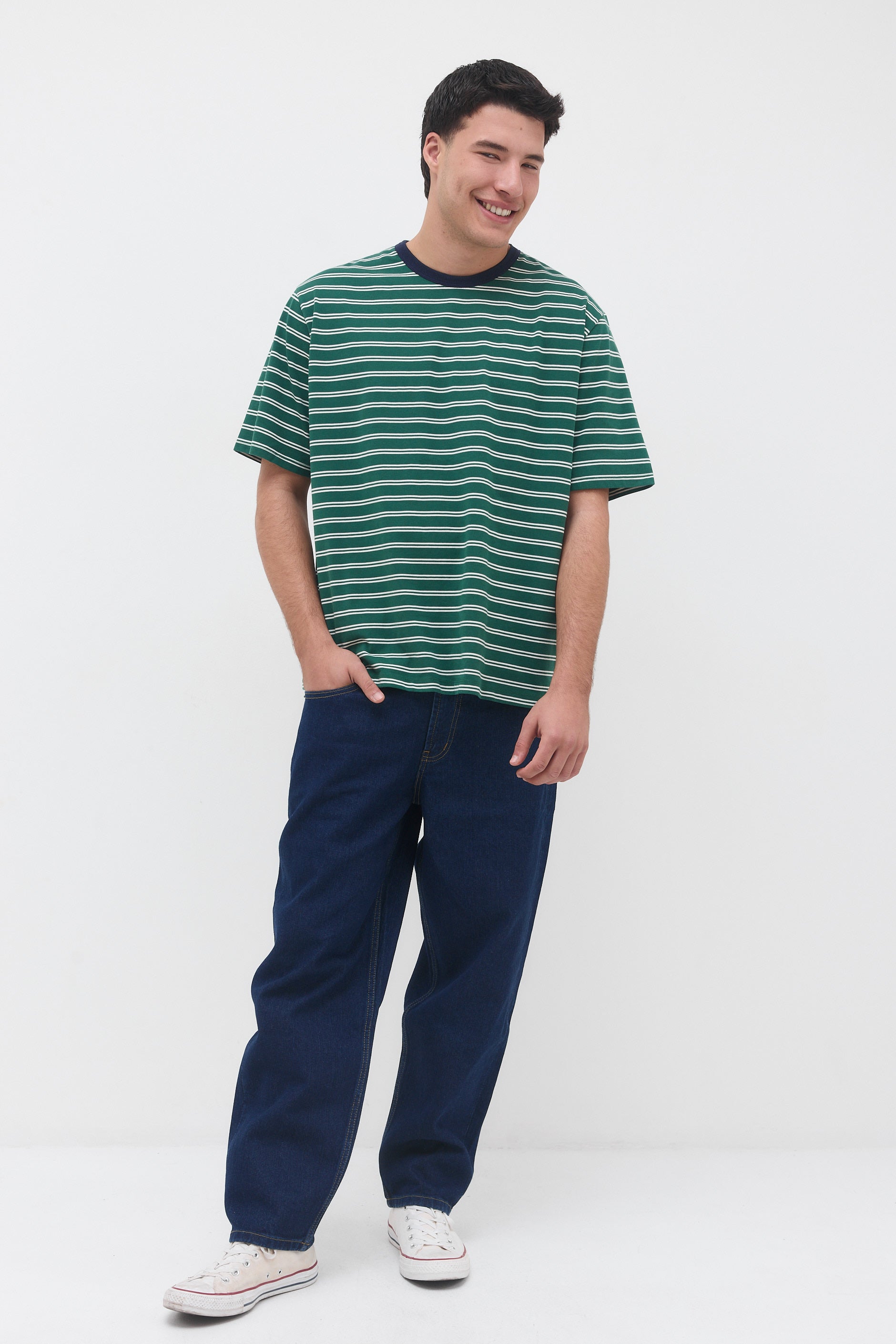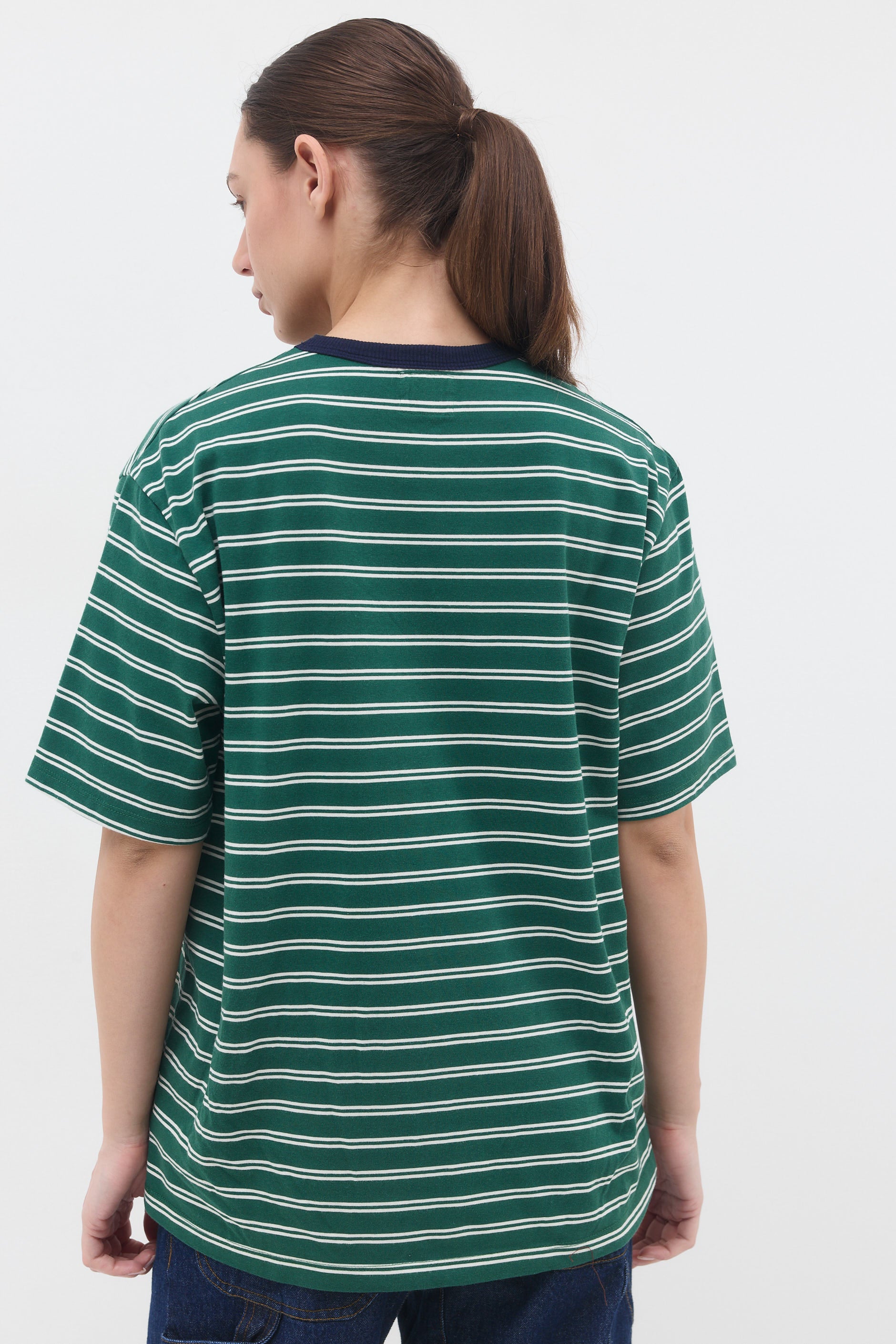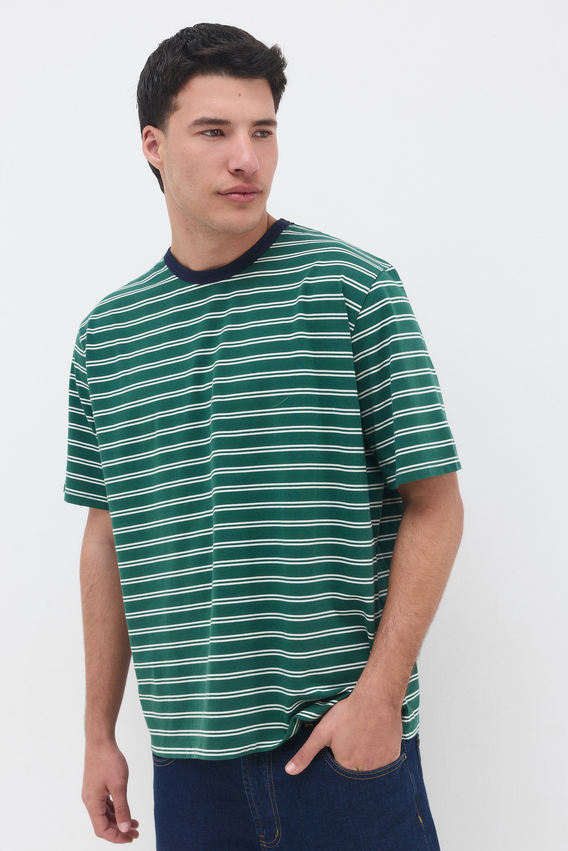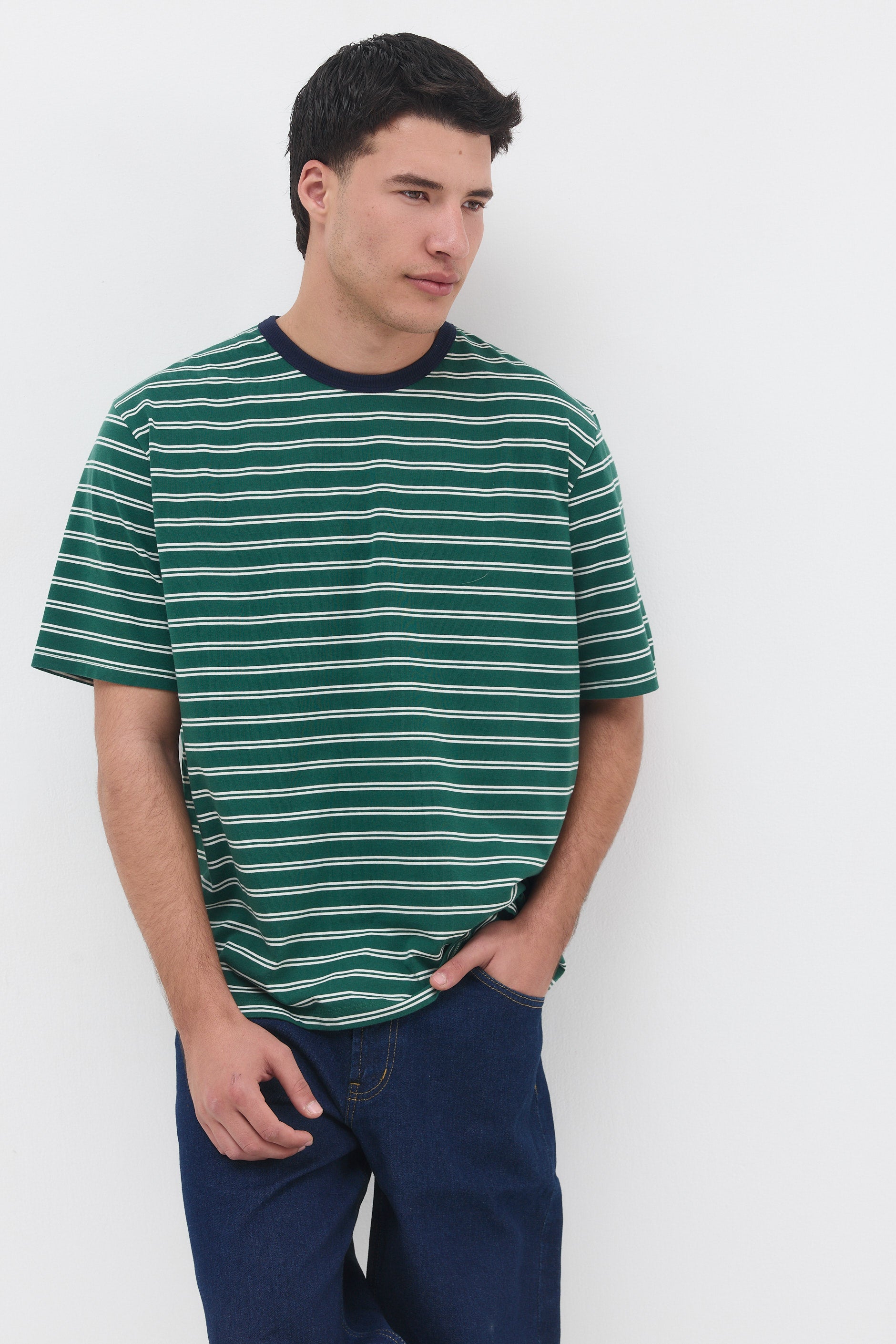 חולצה טי בגזרה ישרה עם צווארון עגול עשוי מבד ריב