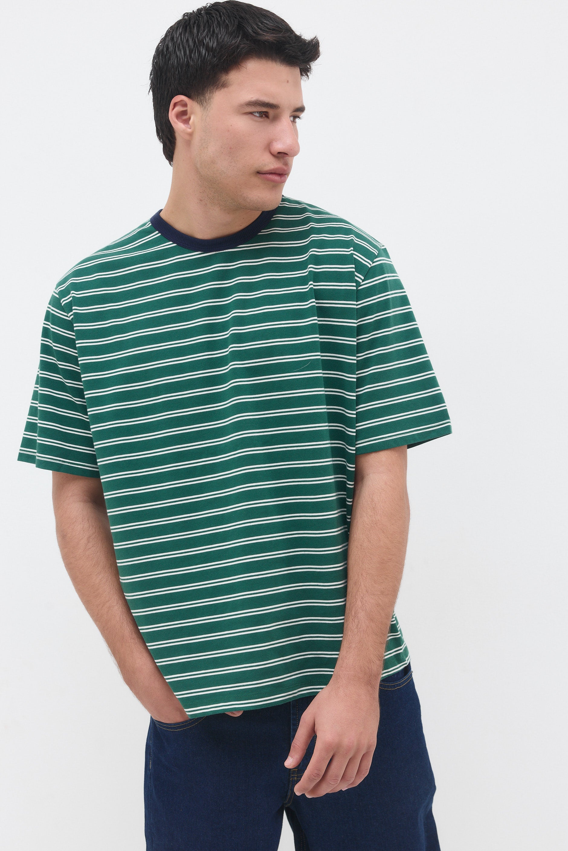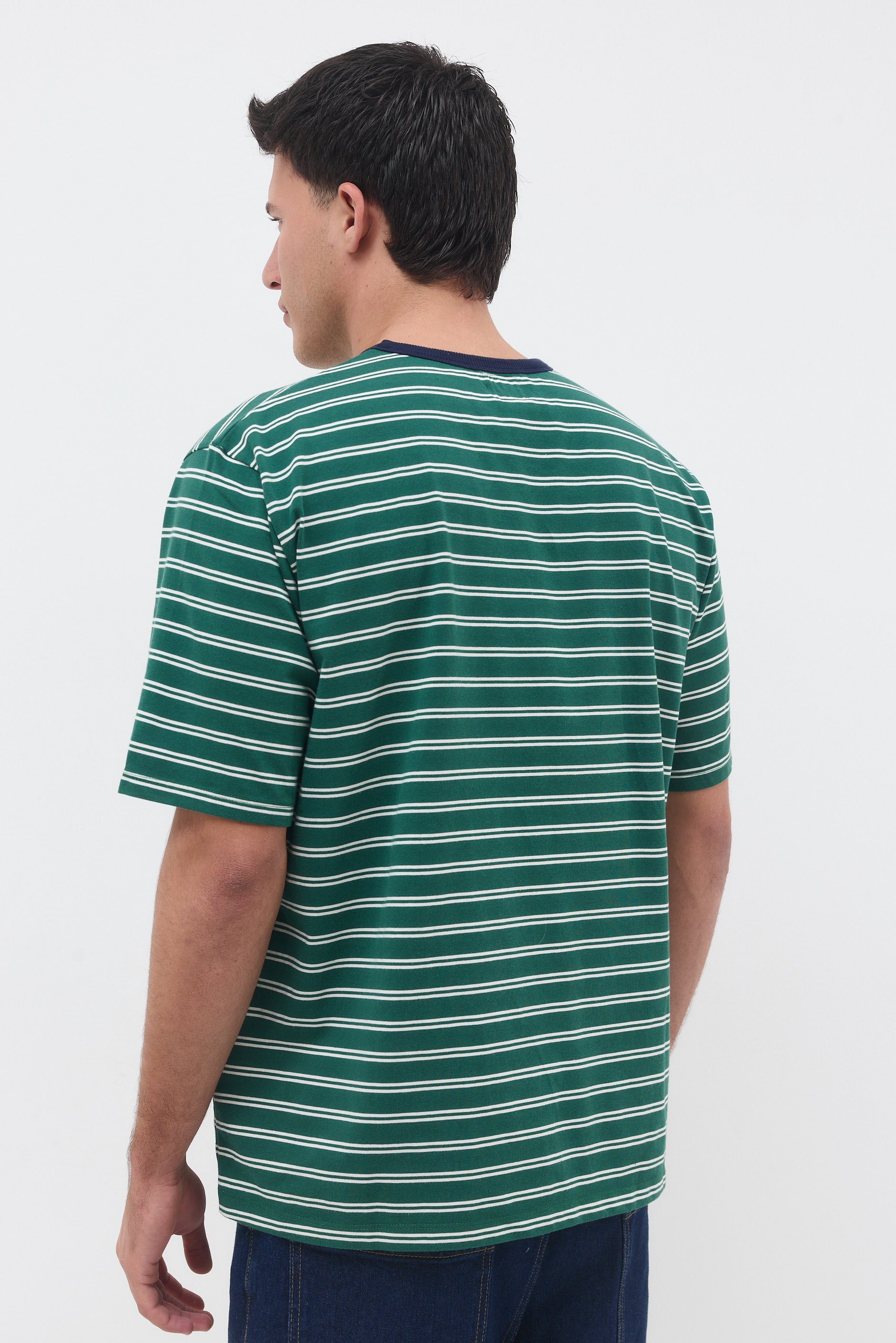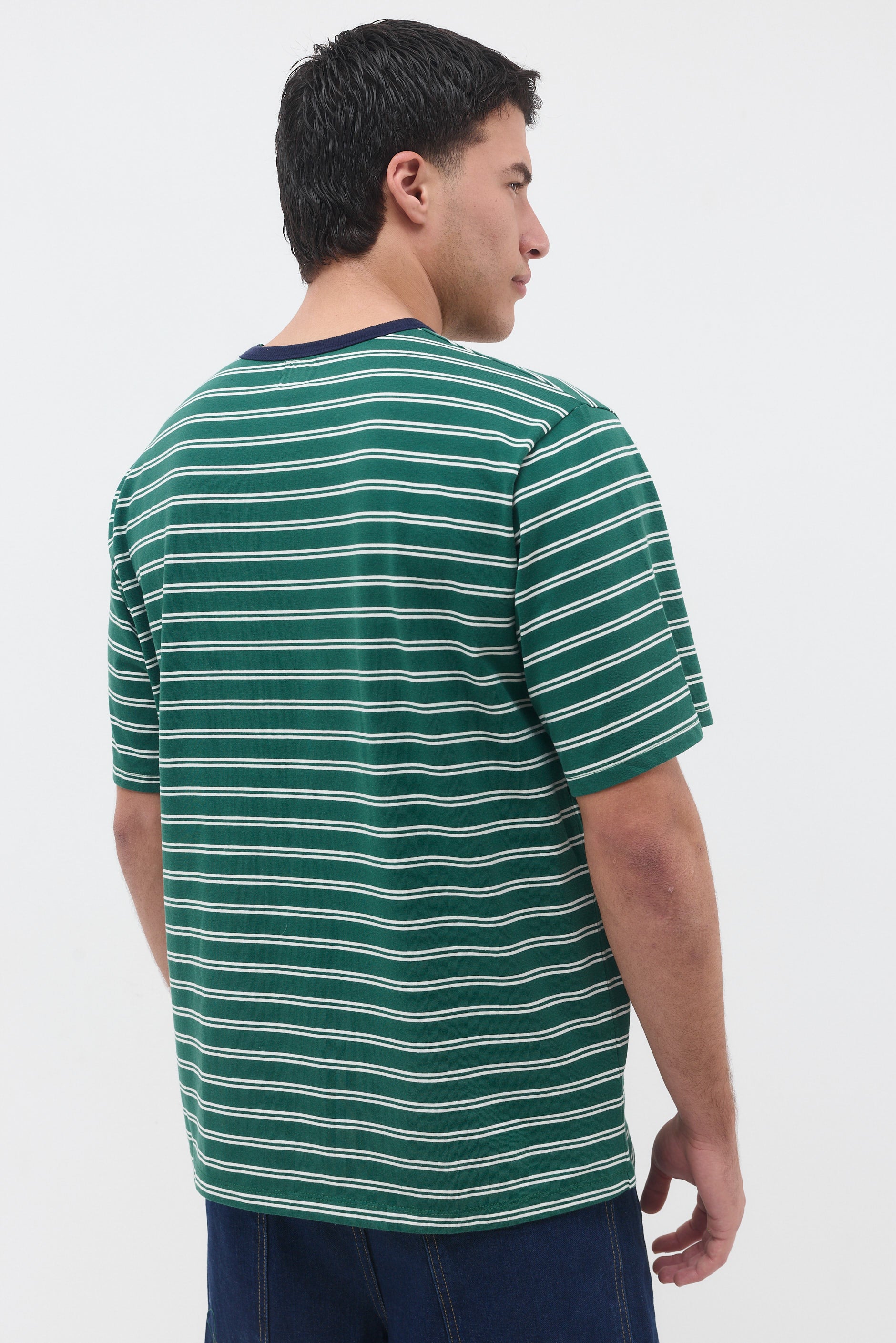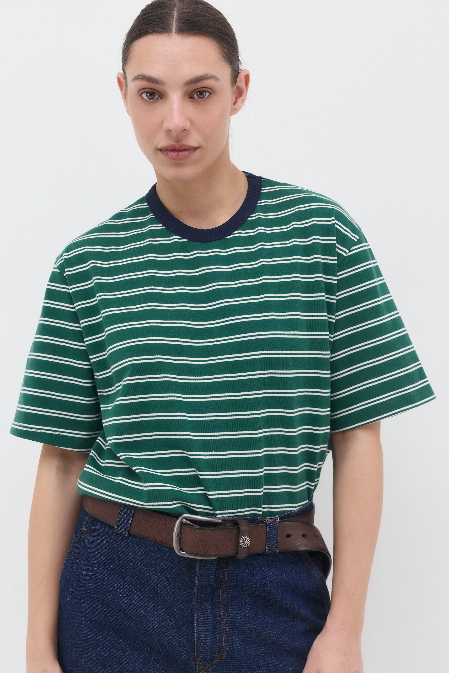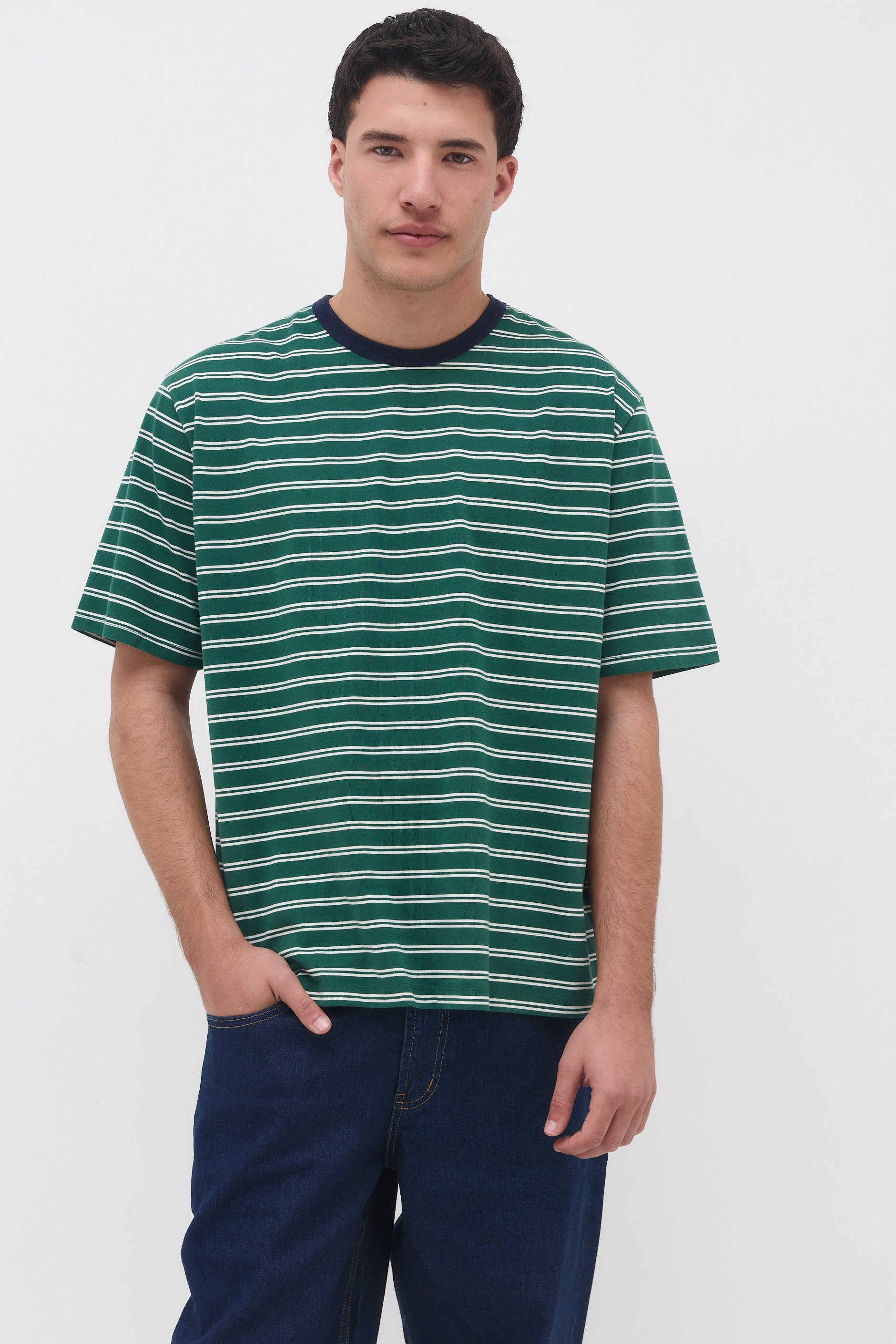 חולצה טי בגזרה ישרה עם צווארון עגול עשוי מבד ריב