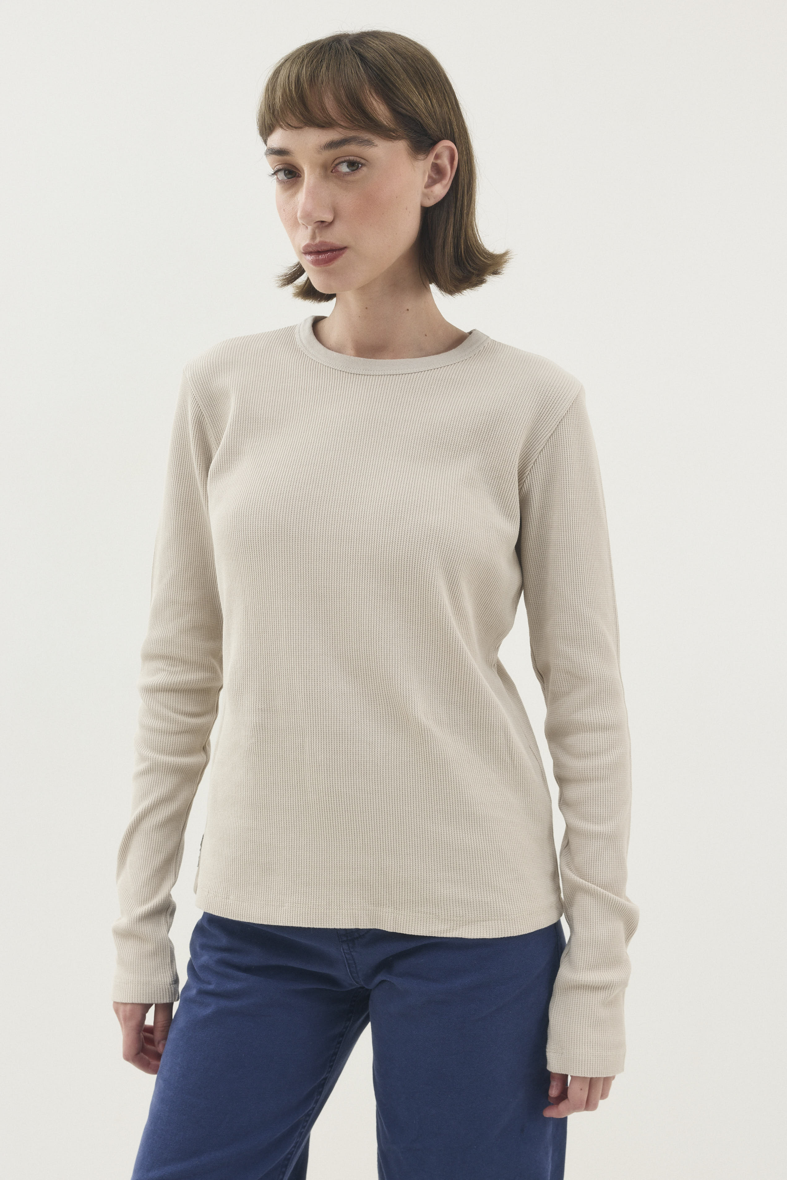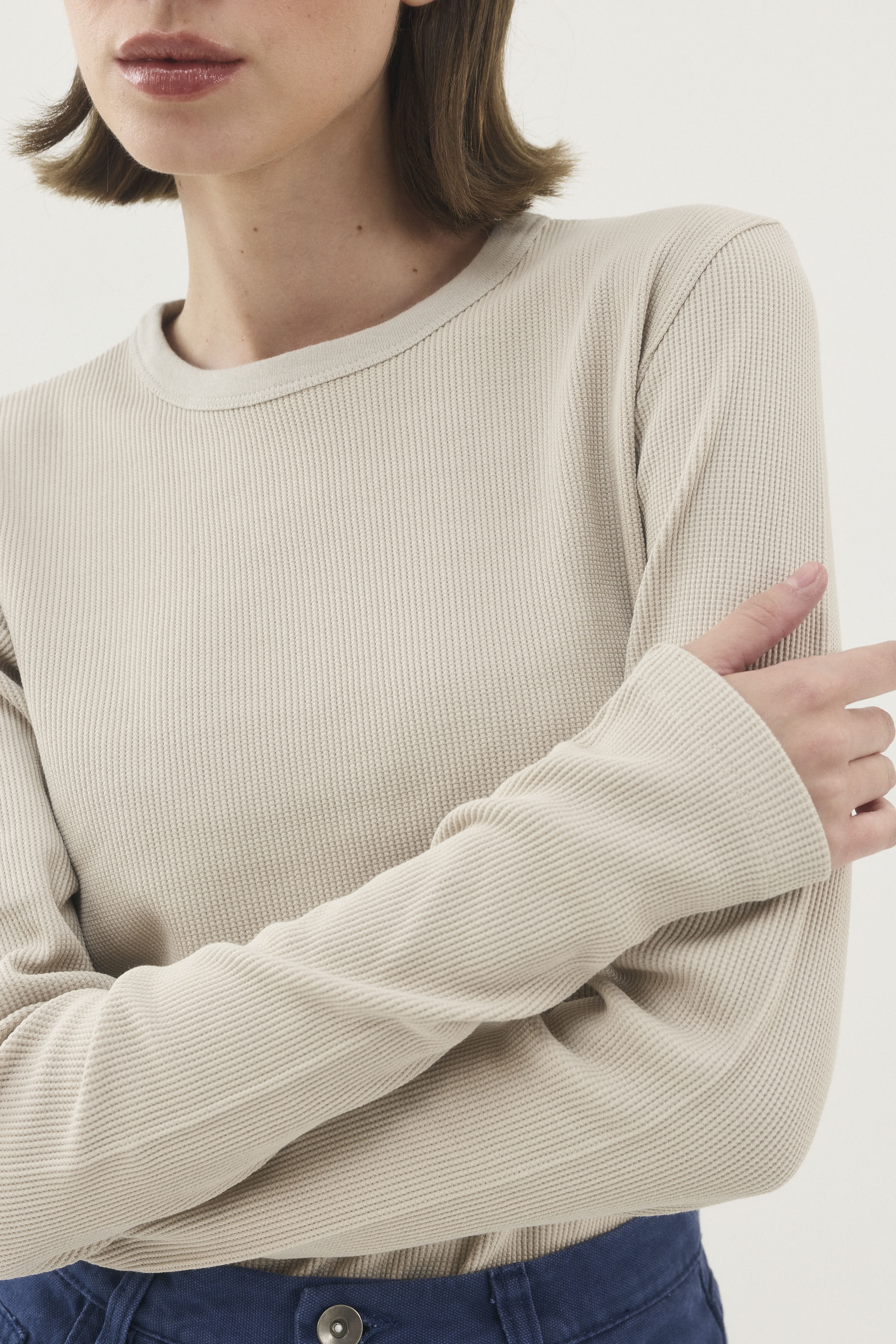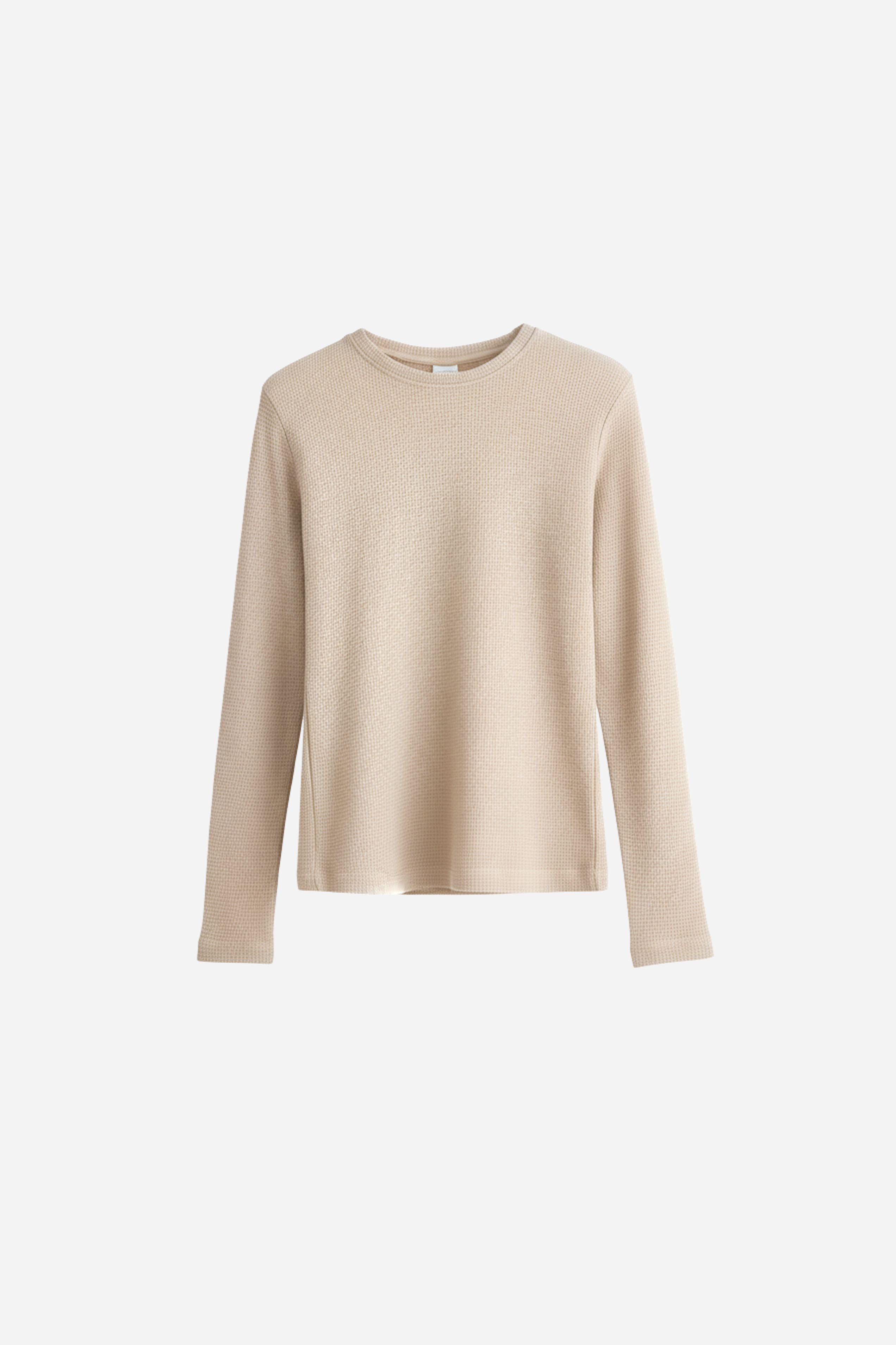 טי שירט עם שרוולים ארוכים מסריג "וופל