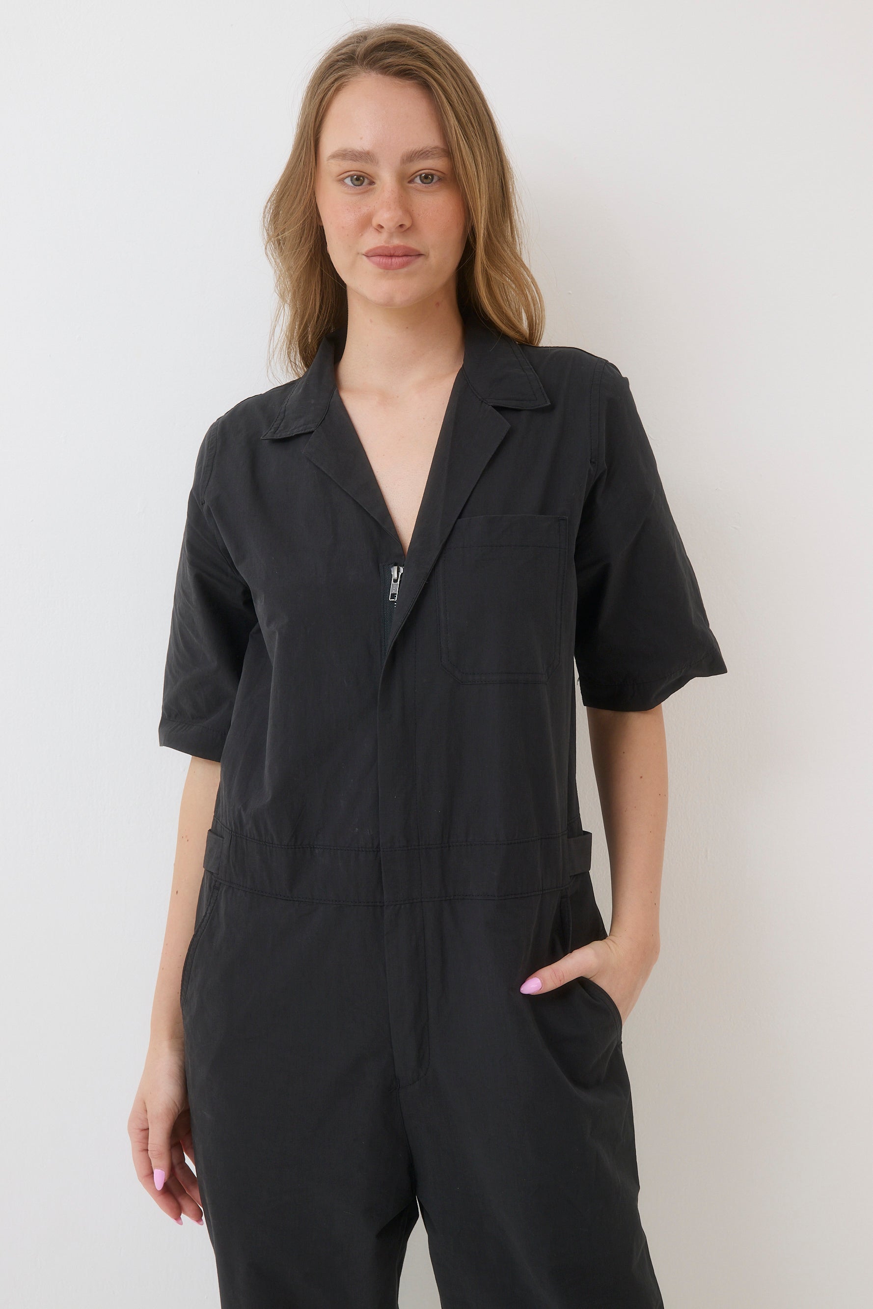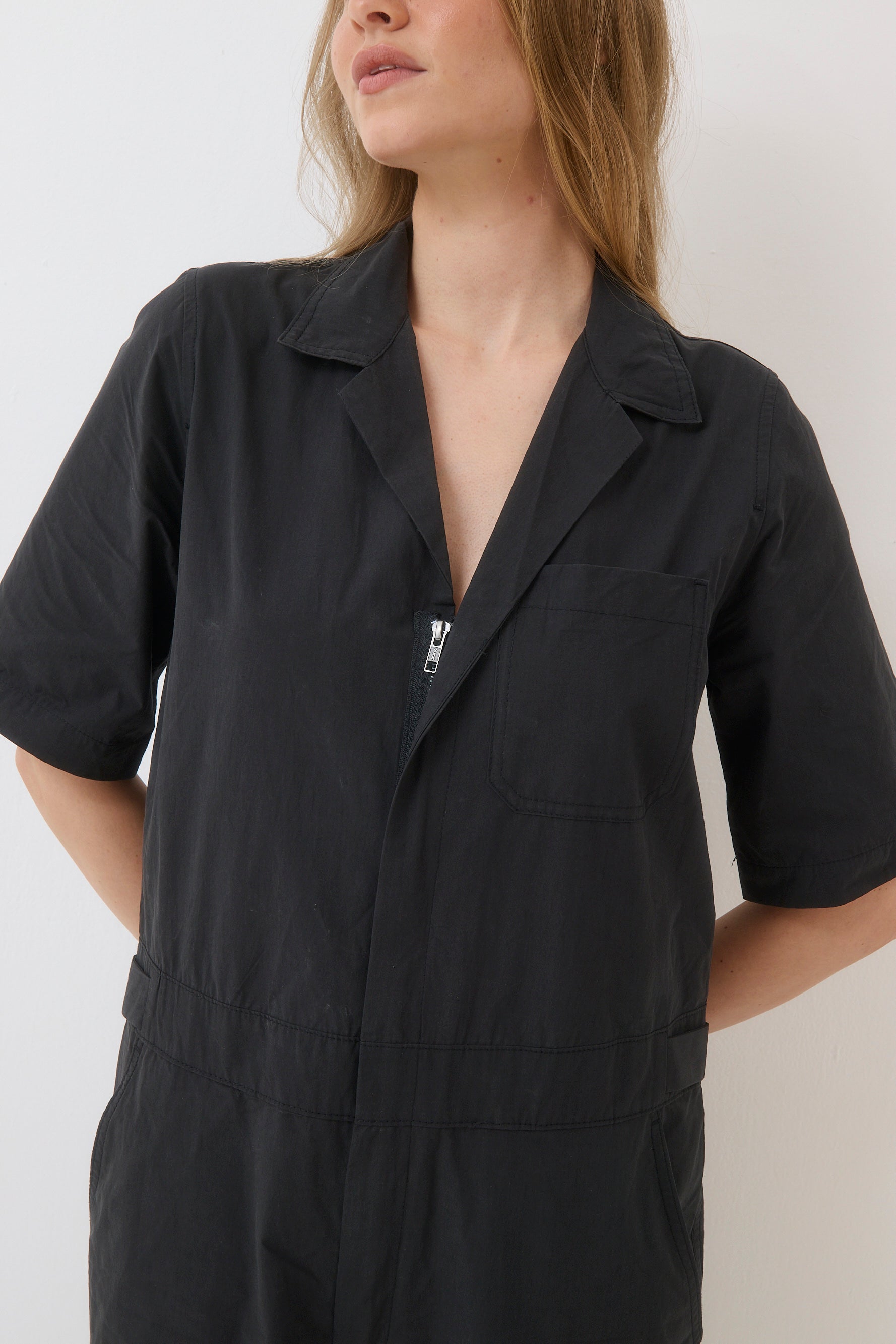- האוברול נרכס ברוכסן לכל אורכו בחלקו הקידמי